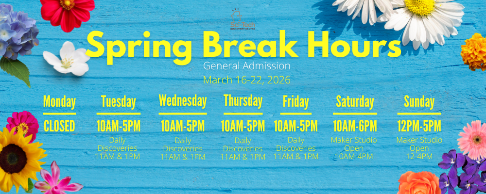FREE Daily Discoveries are held weekdays 11AM & 1PM at our Maker Studio. These activities change weekly and are free with your admission ticket.